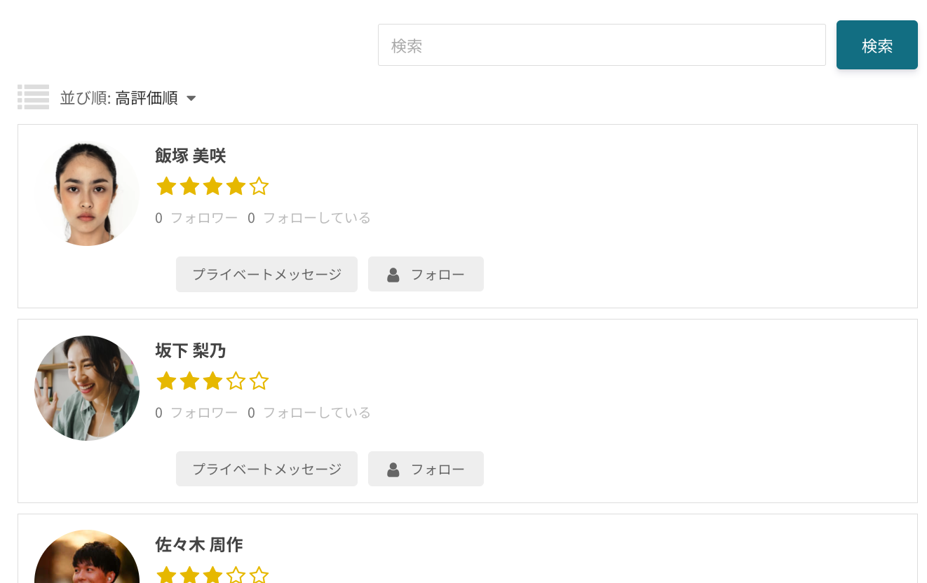 任意のキーワードやユーザータグで会員を検索できます。会員種別によって検索できる会員は制限されているため、すべての会員を制限なく検索することはできません。