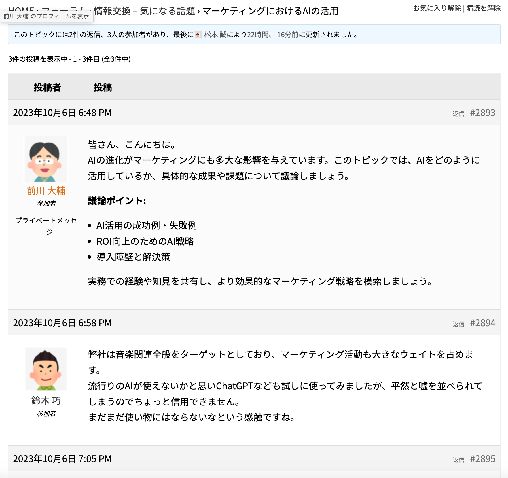 お気に入りや通知もできるので、共通の話題を不特定多数の会員と話し合うのに適しています。