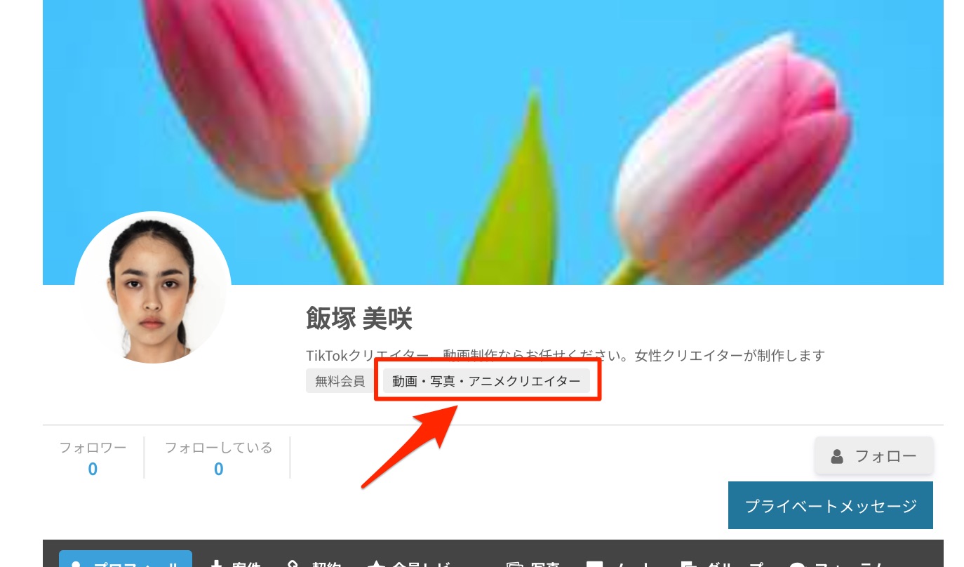 会員リストや会員プロフィールに表示される「プライベートメッセージ」をクリックすることで、会員同士でチャットをすることができます。チャット内容は他の会員からは見ることができません。